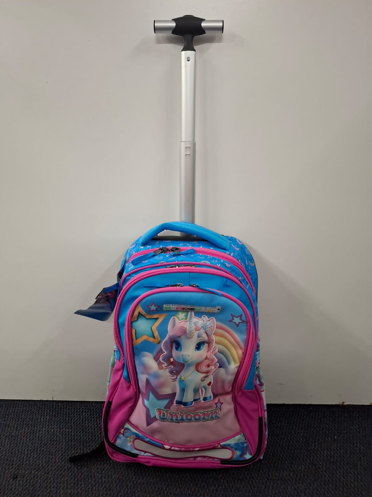 Boomerang Trolley Large Unicorn Dimensions: 34 x 21 x 45 Adjustable back straps Thick Ventilated shoulder straps 2 Side pockets Quality Zippers