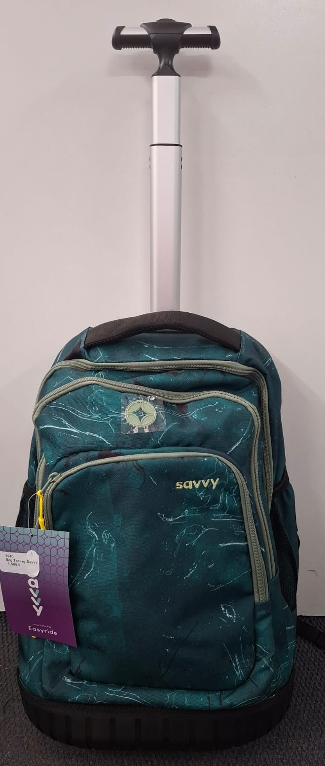 Savvy Easyride Trolley Amazon Dimentions : 50 x 37 x 26cm 2.2kg and 34L Durable firm base Comfortable back padding Tuck away shoulder straps 2 Main compartments and 2 side pockets 1 Year Guarantee